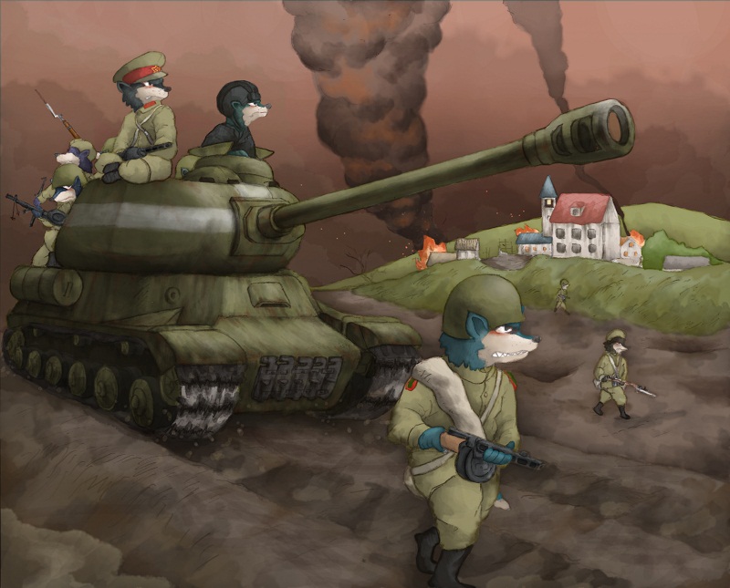 Вышли вперед 2 тяжелых танка - ИС и Тигр, и начали биться.