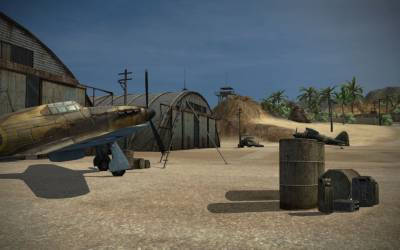 Аэропорт - это североафриканская карта. Песчаная пустынная местность с небольшими горными склонами. Есть выход к морю. Базы разместились среди домов в поселках. Вдоль горного пояса проходит военный полевой аэродром.